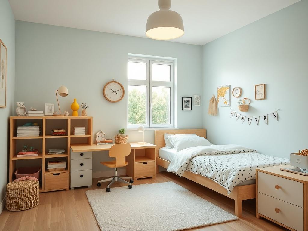 Оптимальная стратегия — сочетать покупку долговечных базовых элементов и бюджетные декоративные детали. Современная мебель из массивного дерева или МДФ с хорошей фурнитурой прослужит годы. Покупку делайте поэтапно: сначала базовые зоны (кровать, стол, шкаф), затем добавляйте отдельные элементы, которые можно заменить по мере взросления ребенка.